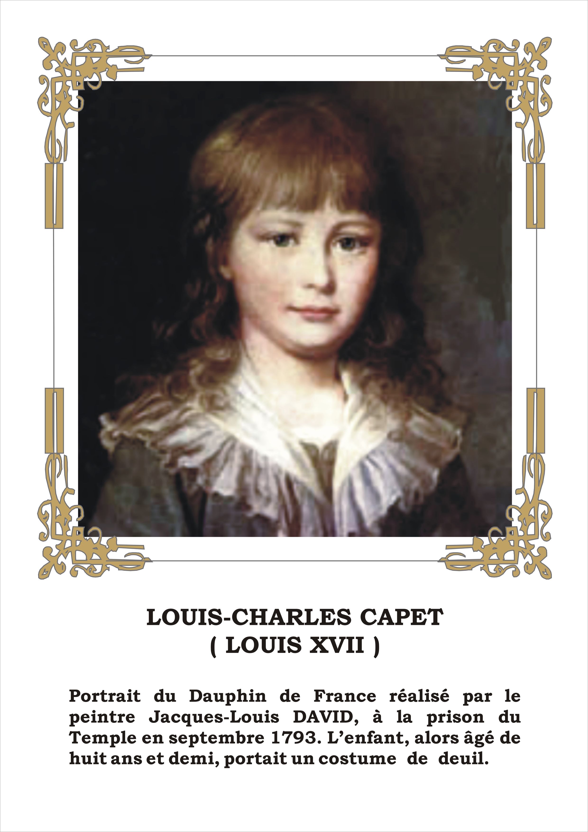 Ci-dessous, le petit Roi : Louis XVII, ou l'enfant de toutes les controverses. Mais Dieu n'a pas voulu qu'il meurt au Temple, afin que la descendance soit assurée et que les prophéties puissent se réaliser, par la venue prochaine du Saint Pontife (Pierre II le Romain) et le Grand Monarque (Henri V de la Croix Glorieuse et du Sacré-Coeur). Toute autre pensée, n'est qu'idée d'homme futile et ne peut être que contraire à LA volonté et LA Vérité de Dieu. D'ailleurs, Madame de Meylian, Fondatrice des Religieuses de l’Immaculée Conception à Rome, prophétisa : « La France sera toujours en révolution tant que son ROI LÉGITIME ne la gouvernera pas… Grande erreur des légitimistes à regarder comme Roi TOUT AUTRE QUE LOUIS XVII ET SA DESCENDANCE… que le nombre des légitimistes sera tellement petit qu’ils pourraient tenir dans une chambre de 25 pieds carrés… »