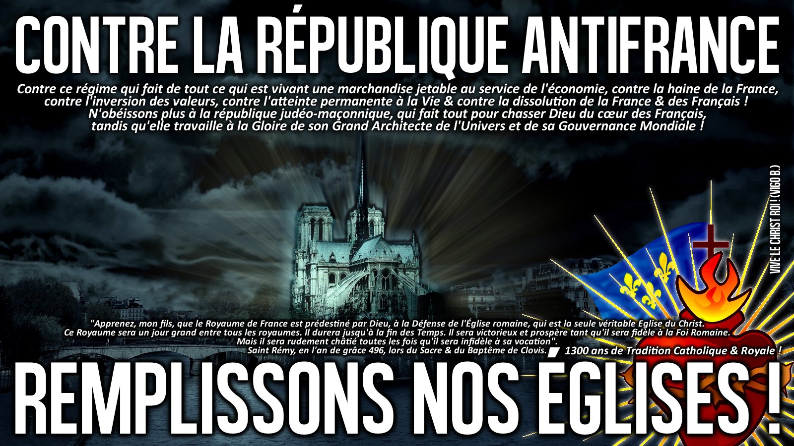 Un grand merci à Vigo Branner, réalisateur de l'image ci-dessous, et qui a permis qu'elle soit visible sur le Site de Frère Elyôn, afin qu'elle puisse être vue et partagée, de façon à ce que le peuple français se réveille avant qu'il ne soit trop tard...